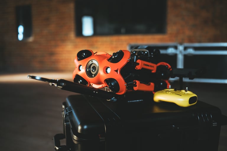 Oferujemy rejestrację oraz badanie zbiorników wodnych, instalacji, marin itp. za pomocą nowoczesnego drona ROV - Chasing M2 Pro
