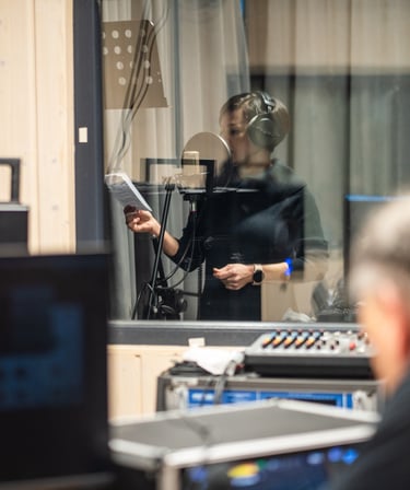 Nasze studio nagrań to miejsce stworzone z myślą o realizacji profesjonalnych nagrań lektorskich oraz produkcji audio na najwyższym poziomie. Specjalizujemy się w nagraniach do audiobooków, podcastów, słuchowisk, materiałów szkoleniowych, reklamowych i wszelkich form, w których kluczowe znaczenie ma czysty, wyrazisty i perfekcyjnie zrealizowany dźwięk. Dysponujemy nowoczesnym zapleczem technicznym, wysokiej klasy mikrofonami oraz akustycznie przygotowanymi pomieszczeniami, co pozwala nam uzyskać studyjną jakość nagrań spełniającą standardy rynkowe i wydawnicze.